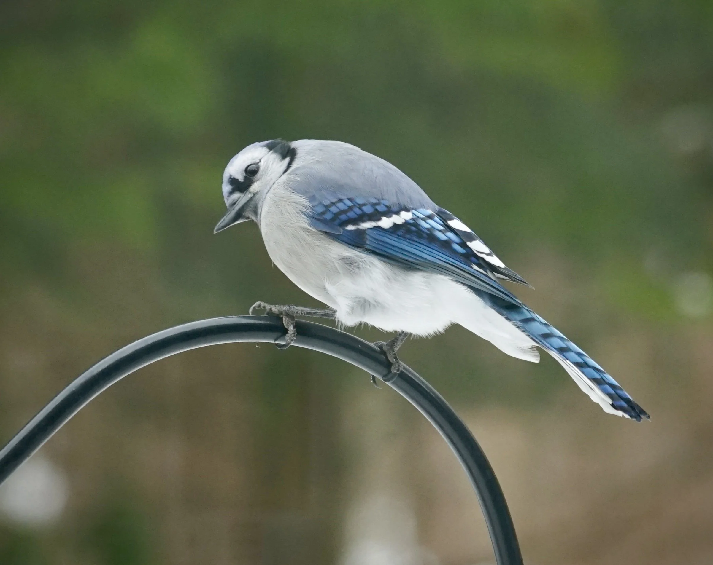 A giant blue Jay trying to decide if he can trust his weight on the feeder or if he should scavenge from the ground (he tried both, but spent more time in the ground).
