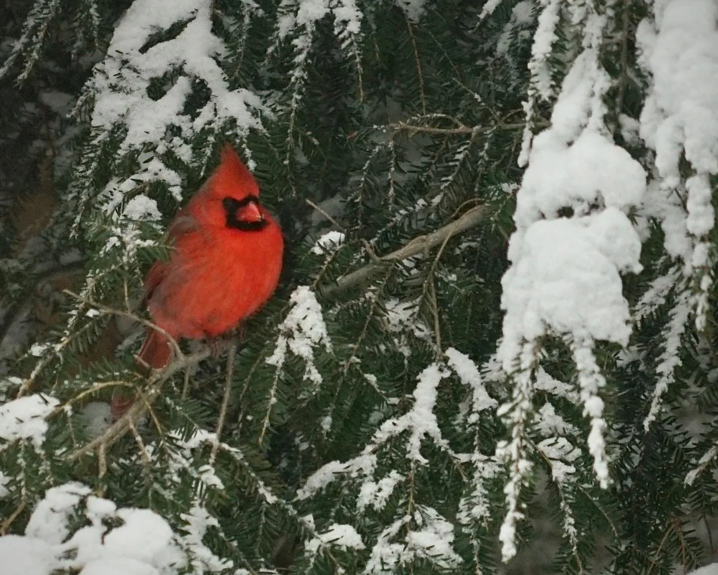 A Cardinal in the hemlocks - he almost looks as if he’s posing for a Christmas card.