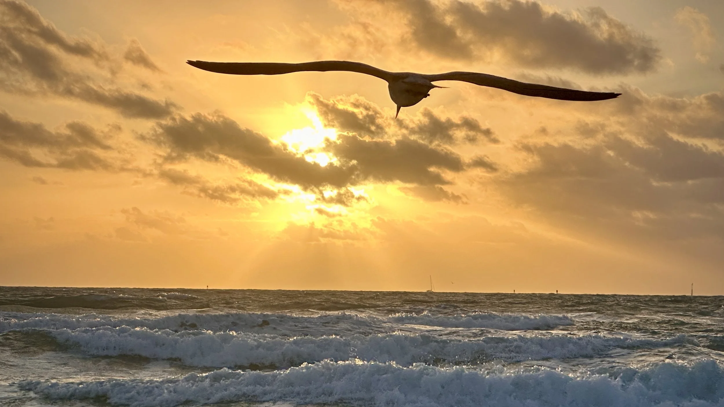 Tuesday morning was exuberant chaos on the beach. The waves were crashing, the wind was thundering. Surfers were shouting to each other back and forth about the best spots, then fighting their way through the chop past the break. Along the coast, people who gathered for the sunrise were laughing and talking and taking many, many pictures.