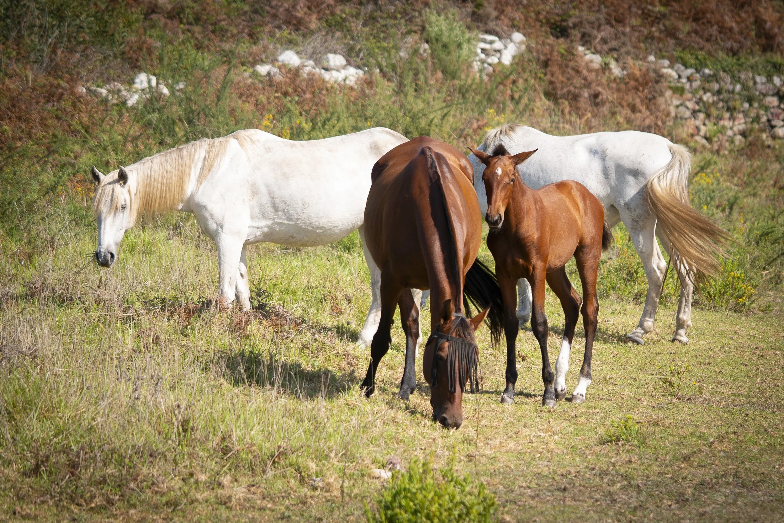 Back down at sea level, horses grazed along the Coastal Camino
